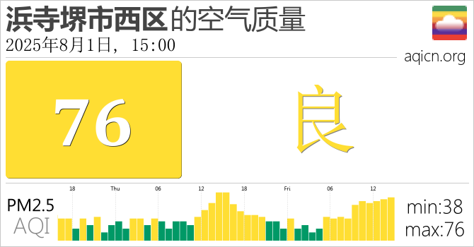日本浜寺堺市西区的空气污染指数是良