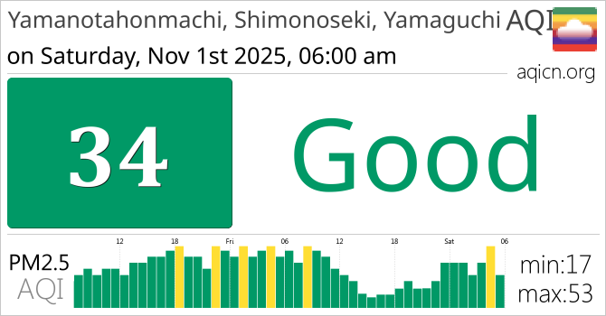 Yamanotahonmachi, Shimonoseki, Yamaguchi, Japan Air Quality is Good