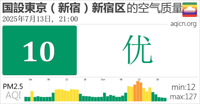 日本国設東京(新宿)新宿区的空气污染指数是优