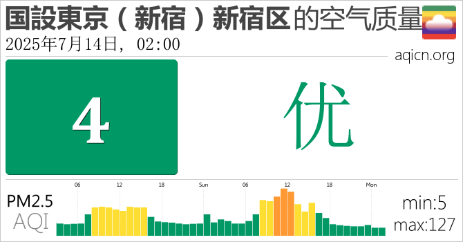 日本国設東京(新宿)新宿区的空气污染指数是优