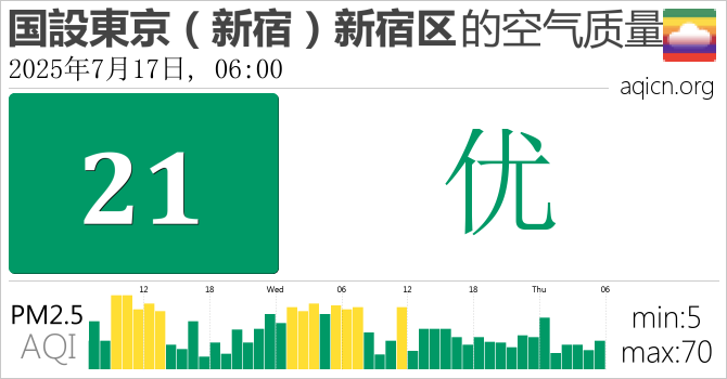 日本国設東京(新宿)新宿区的空气污染指数是优