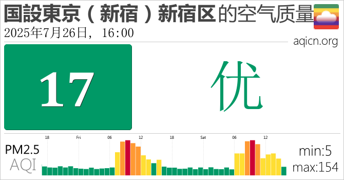 日本国設東京(新宿)新宿区的空气污染指数是优