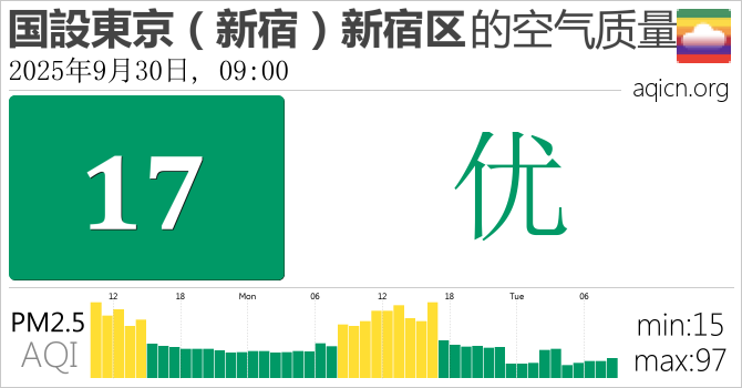 日本国設東京(新宿)新宿区的空气污染指数是优