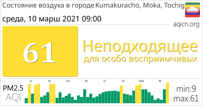 Качество воздуха в Kumakuracho, Moka, Tochigi, Япония является Неподходящее для особо восприимчивых