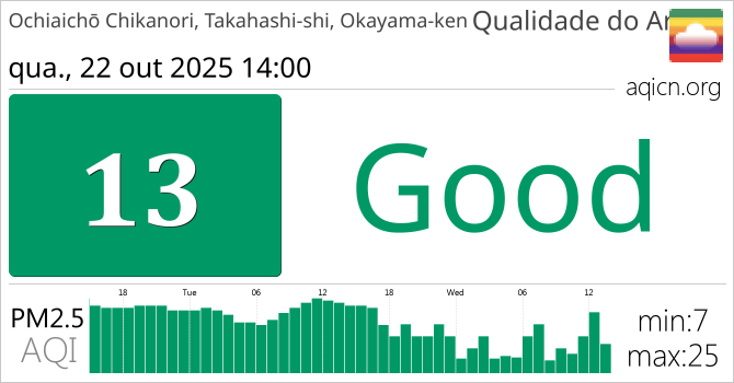 A qualidade do ar em Ochiaichō Chikanori, Takahashi-shi, Okayama-ken, Japão é Good