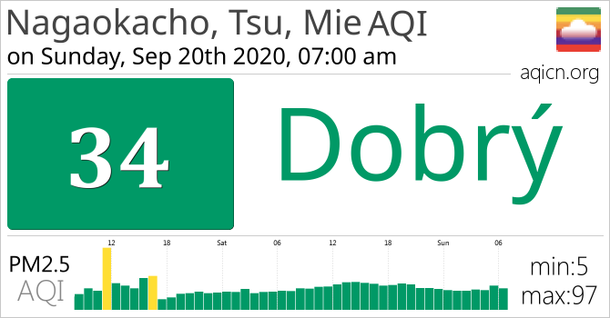 Kvalita ovzduší ve městě Nagaokacho, Tsu, Mie, Japan je Dobrý