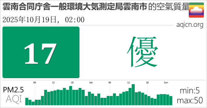 日本雲南合同庁舎一般環境大気測定局雲南市的空氣污染指數是優