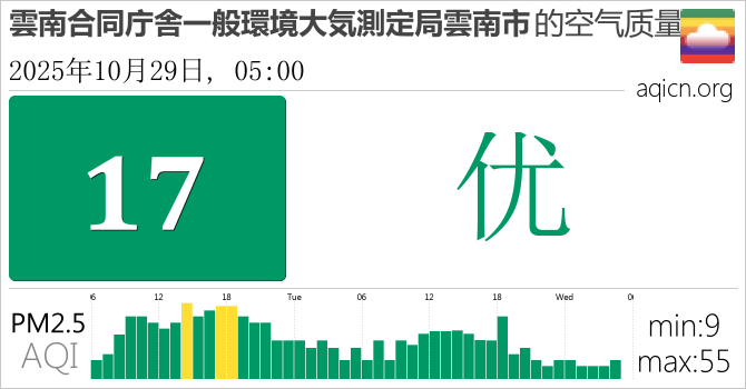日本雲南合同庁舎一般環境大気測定局雲南市的空气污染指数是优