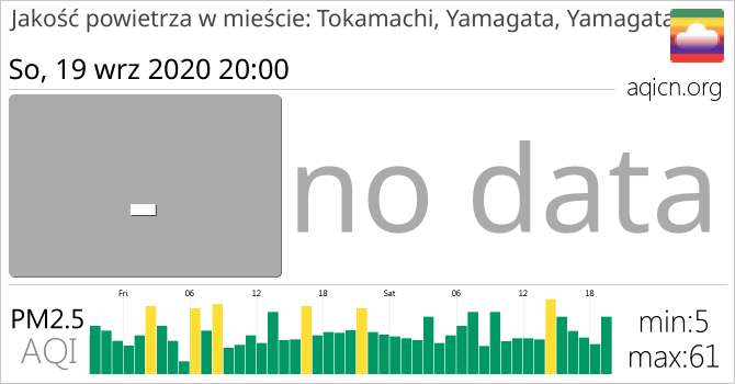Jakość powietrza w mieście Tokamachi, Yamagata, Yamagata, Japonia jest no data