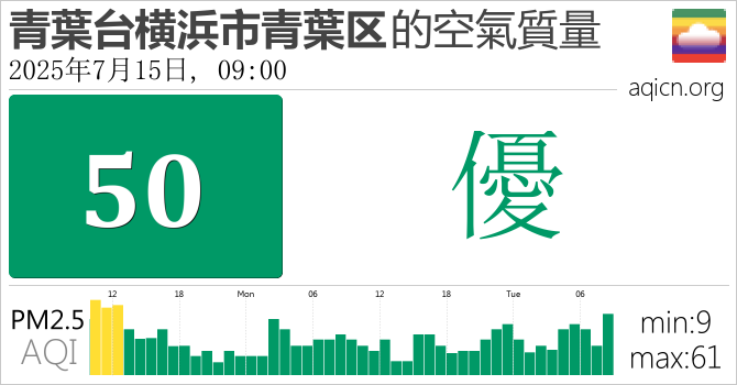 日本青葉台横浜市青葉区的空氣污染指數是優