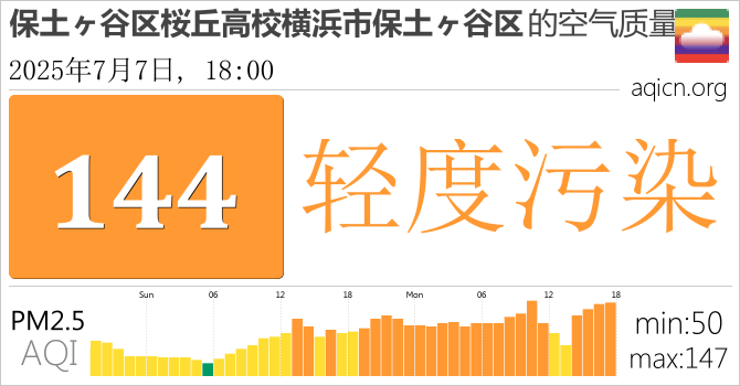 日本保土ヶ谷区桜丘高校横浜市保土ヶ谷区的空气污染指数是轻度污染
