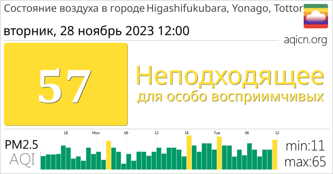 Качество воздуха в Higashifukubara, Yonago, Tottori, Япония является Неподходящее для особо восприимчивых