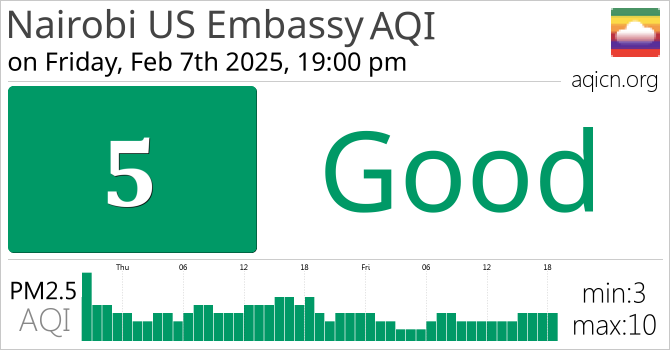 Nairobi US Embassy, Kenya Air Quality is Good
