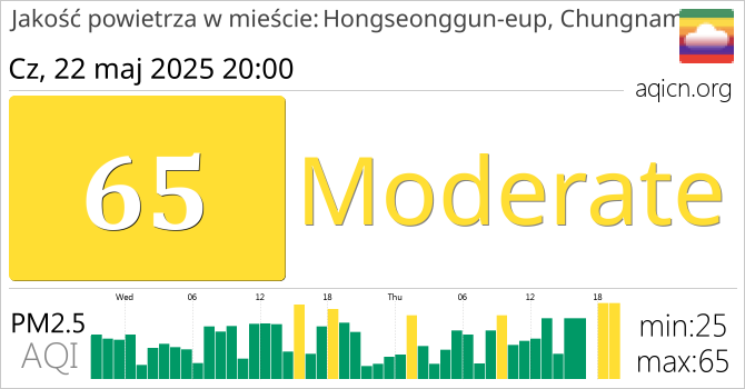 Jakość powietrza w mieście Hongseonggun-eup, Chungnam, Republika Korei jest Moderate