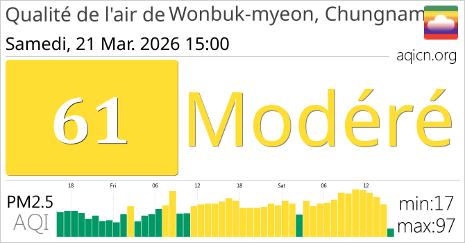 La qualité de l'air à Wonbuk-myeon, Chungnam, Corée du Sud est Modéré