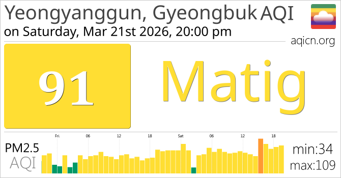 De luchtkwaliteit van Yeongyanggun, Gyeongbuk, South Korea is Matig