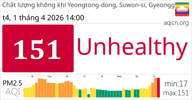Chất lượng không khí Yeongtong-dong, Suwon-si, Gyeonggi, South Korea Unhealthy