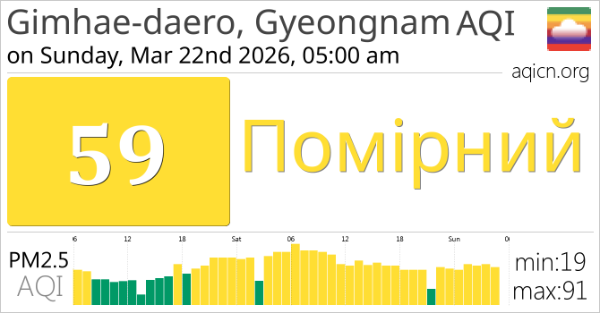 Якість повітря в місті Gimhae-daero, Gyeongnam, South Korea становить Помірний