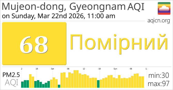 Якість повітря в місті Mujeon-dong, Gyeongnam, South Korea становить Помірний