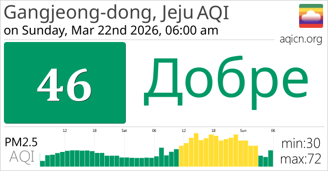 Якість повітря в місті Gangjeong-dong, Jeju, South Korea становить Добре