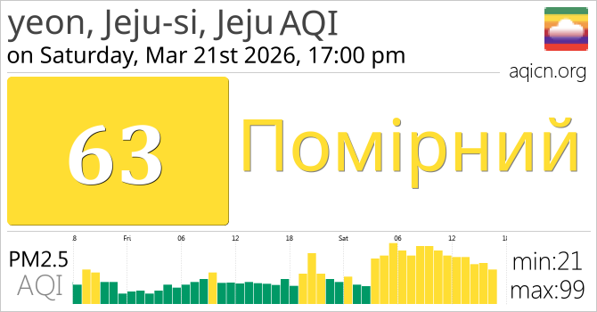 Якість повітря в місті yeon, Jeju-si, Jeju, South Korea становить Помірний