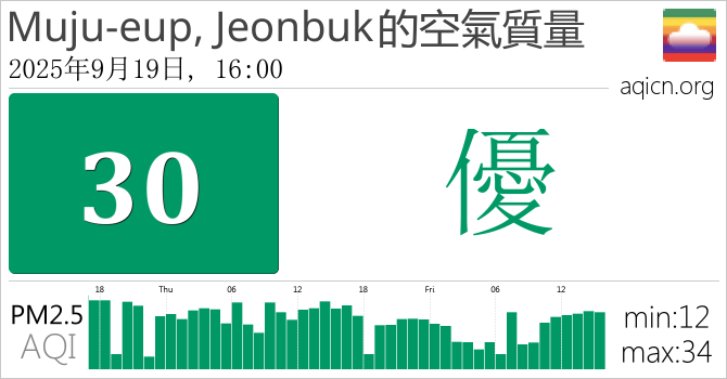 Muju-eup, Jeonbuk, 大韓民國的空氣污染指數是優