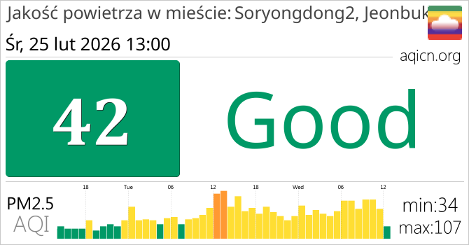 Jakość powietrza w mieście Soryongdong2, Jeonbuk, Republika Korei jest Good