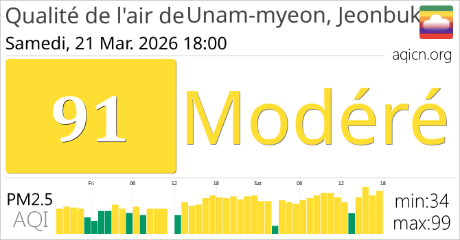 La qualité de l'air à Unam-myeon, Jeonbuk, Corée du Sud est Modéré