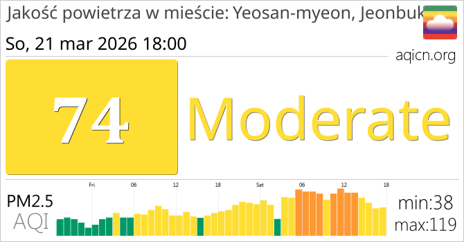 Jakość powietrza w mieście Yeosan-myeon, Jeonbuk, Republika Korei jest Moderate