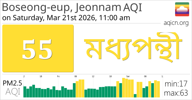 Boseong-eup, Jeonnam, South Korea-এর বায়ুর গুণমান মধ্যপন্থী