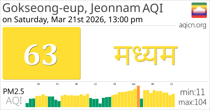 Gokseong-eup, Jeonnam, South Korea की वायु गुणवत्ता मध्यम है