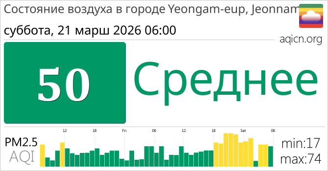 Качество воздуха в Yeongam-eup, Jeonnam, Республика Корея является Среднее