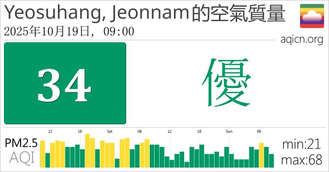 Yeosuhang, Jeonnam, 大韓民國的空氣污染指數是優
