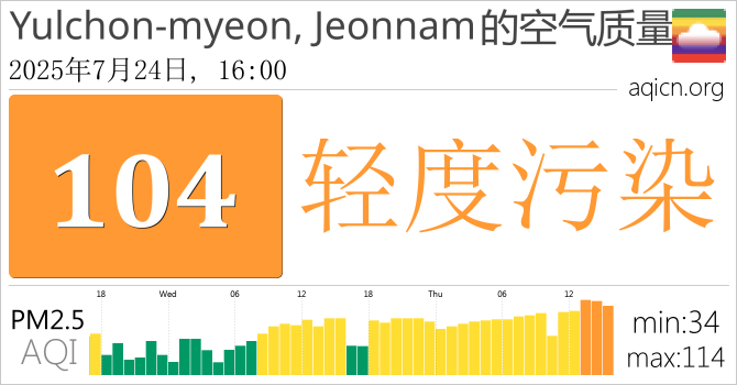 Yulchon-myeon, Jeonnam, 大韩民国的空气污染指数是轻度污染