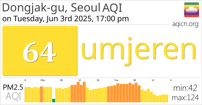 Kvaliteta zraka u gradu Dongjak-gu, Seoul, South Korea je umjeren