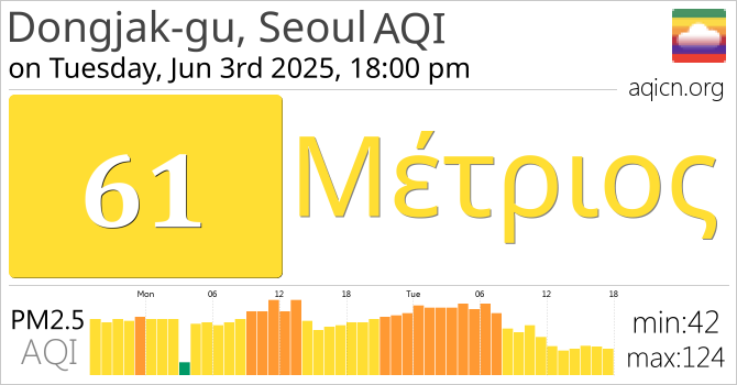 Η ποιότητα αέρα του Dongjak-gu, Seoul, South Korea είναι Μέτριος