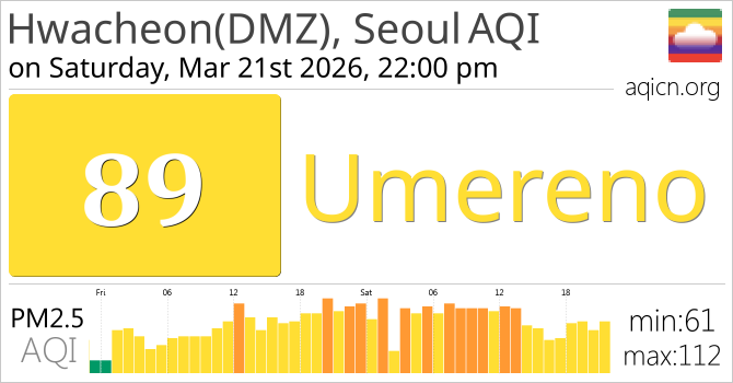 Kvalitet zraka za Hwacheon(DMZ), Seoul, South Korea je Umereno