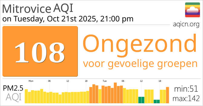De luchtkwaliteit van Mitrovice, Kosovo is Ongezond voor gevoelige groepen