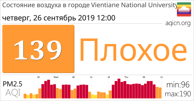 Качество воздуха в Vientiane National University, Laos является Плохое