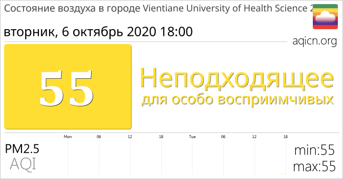 Качество воздуха в Vientiane University of Health Science 2, Laos является Неподходящее для особо восприимчивых