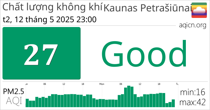 Chất lượng không khí Kaunas Petrašiūnai, Lithuania Good
