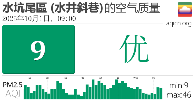 澳门水坑尾區 (水井斜巷)的空气污染指数是优