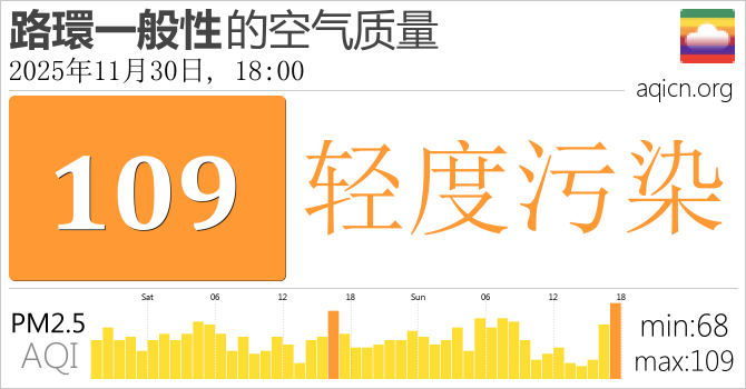澳门路環一般性的空气污染指数是轻度污染