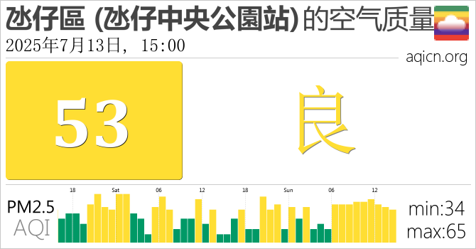 澳门氹仔區 (氹仔中央公園站)的空气污染指数是良