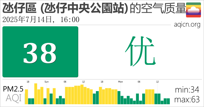 澳门氹仔區 (氹仔中央公園站)的空气污染指数是优