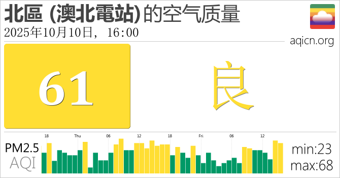 澳门北區 (澳北電站)的空气污染指数是良