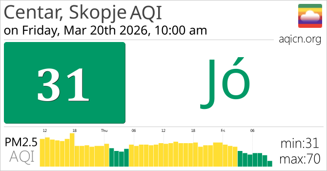Centar, Skopje, Macedonia levegőminősége Jó