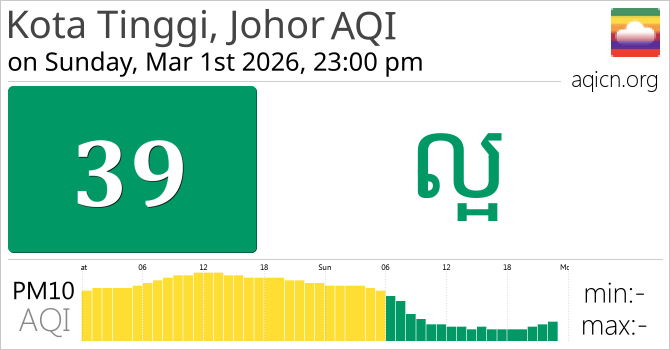 គុណភាពខ្យល់របស់ Kota Tinggi, Johor, Malaysia គឺ ល្អ
