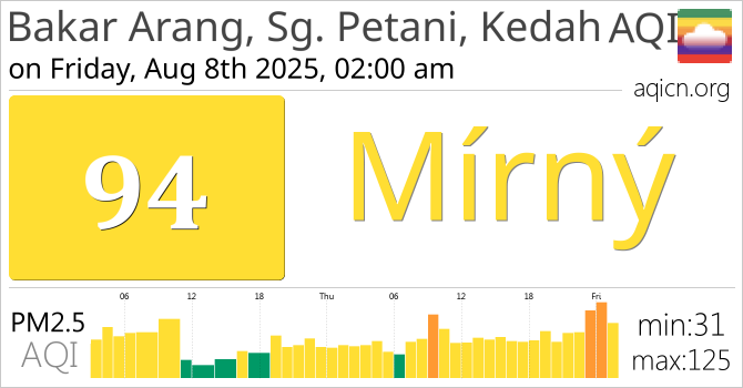Kvalita ovzduší ve městě Bakar Arang, Sg. Petani, Kedah, Malaysia je Mírný
