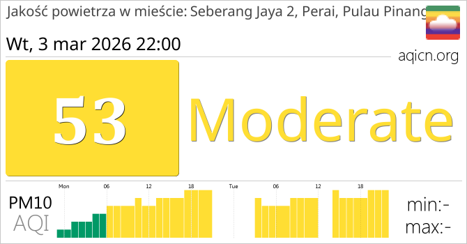 Jakość powietrza w mieście Seberang Jaya 2, Perai, Pulau Pinang, Malezja jest Moderate